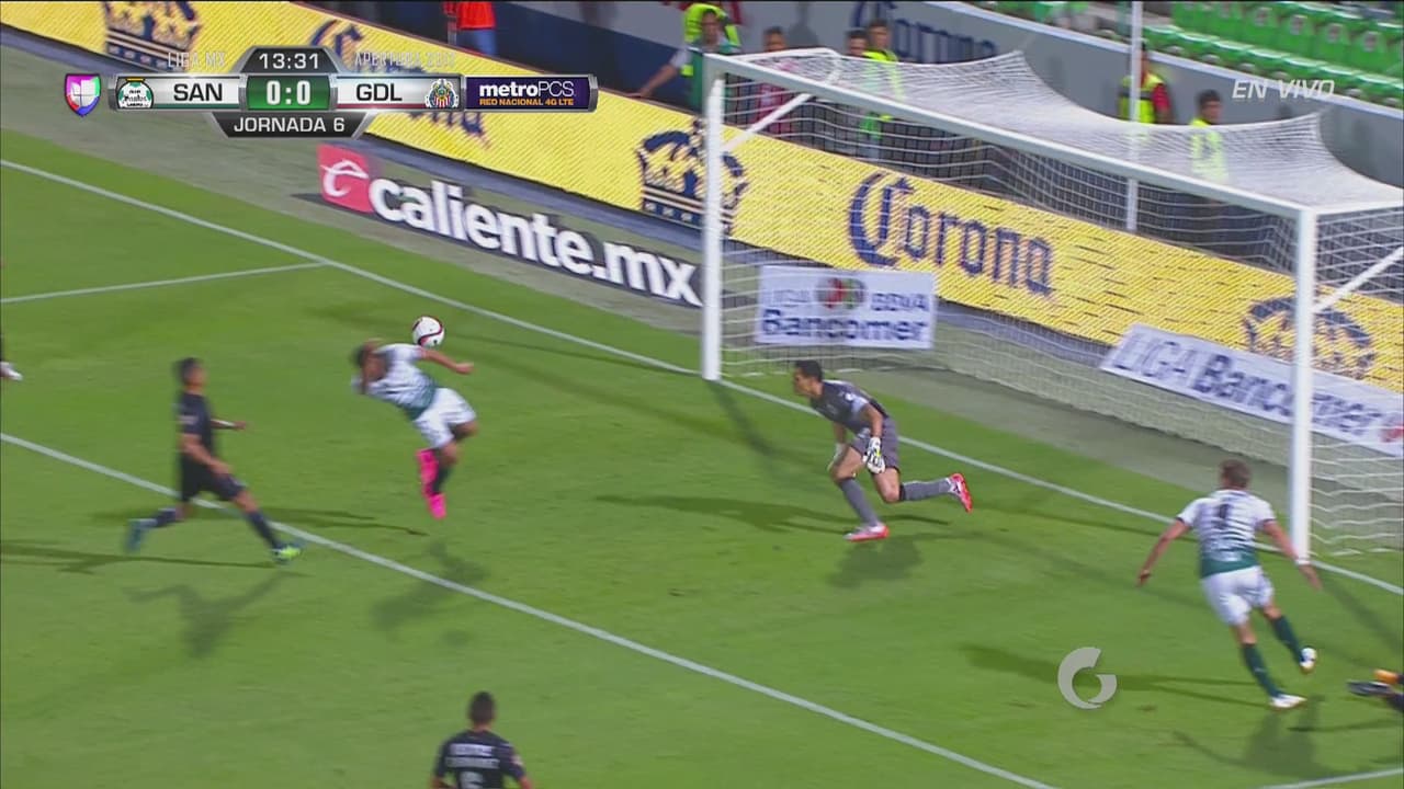 El juvenil de Santos llegó con demasiado ímpetu al área y la pelota le quedó atrás para que su remate quedará ahogado.