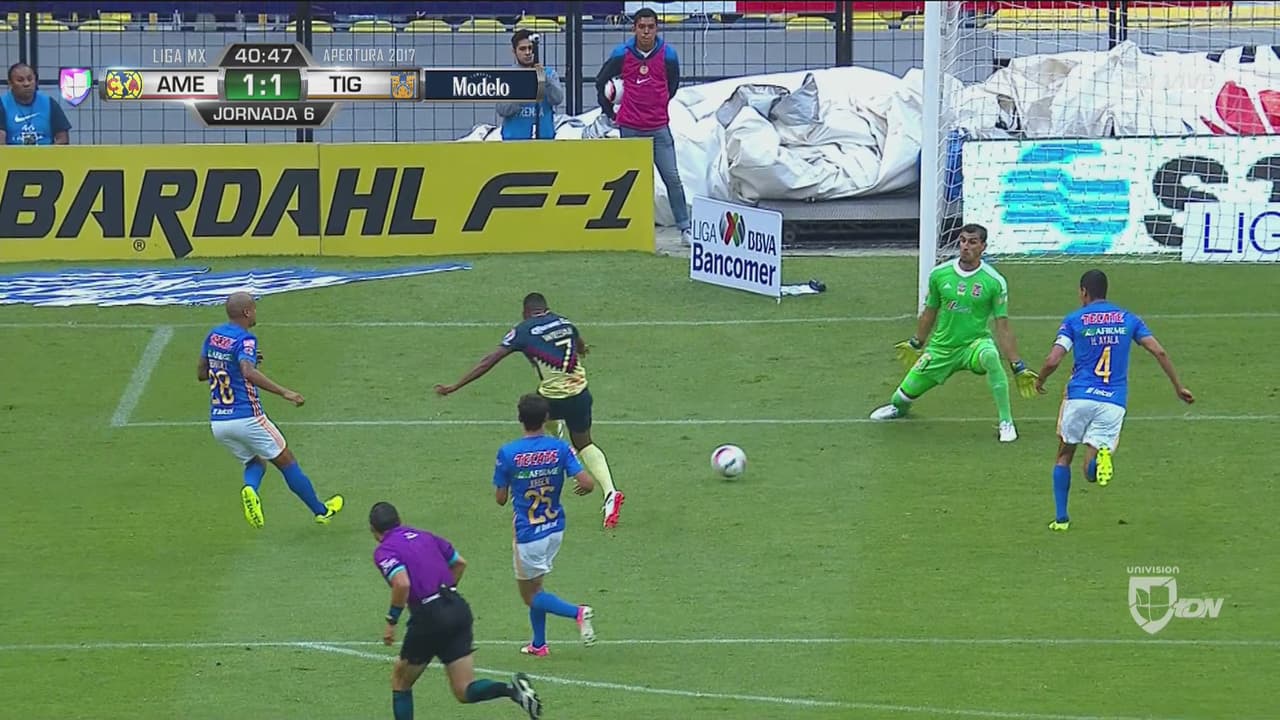 Darwin Quintero hizo una jugada grande y sirvió para Da Silva, quien venció en el duelo a Nahuel Guzmán para poner el 1-1 entre Águilas y Tigres.