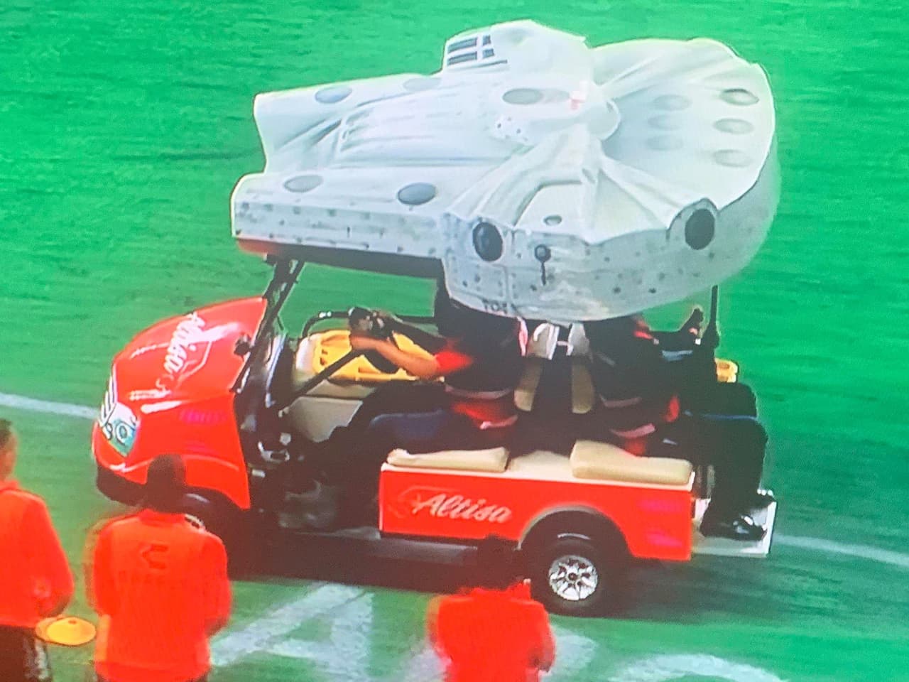 El Daily Mail, el segundo periódico más leído de Inglaterra, le dio un espacio en sus redes sociales al 'carrito de las desgracias' que se utiliza en el Estadio Caliente, pues el auto que se utiliza para ayudar a retirar a los jugadores retirados del campo está 'disfrazado' del Halcón Milenario, la nave de Han Solo, uno de los protagonistas de la historia.