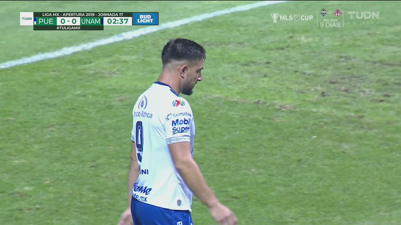Pablo Jáquez perdió el balón en su cuadro bajo, el ariete del Puebla se perfilaba solo y sin marca, pero no le dio dirección a su disparo al 2’.