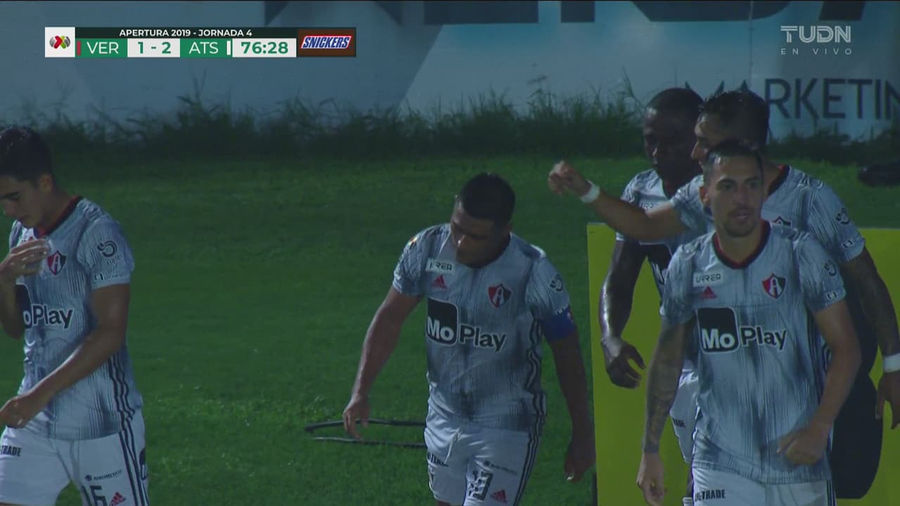 Veracruz inició ganando con un gol de 'Polaco' Menéndez, quien tenía cerca de 10 meses sin anotar gol. El goleador le ganó el salto a la zaga atlista y con un fuerte cabezazo puso el primero para los locales.