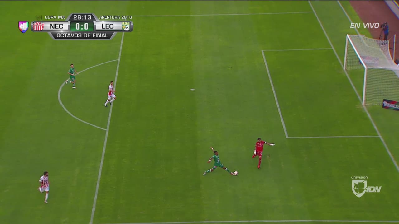 Yosgart evita la ocasión de Yairo Moreno tras error de la zaga necaxista