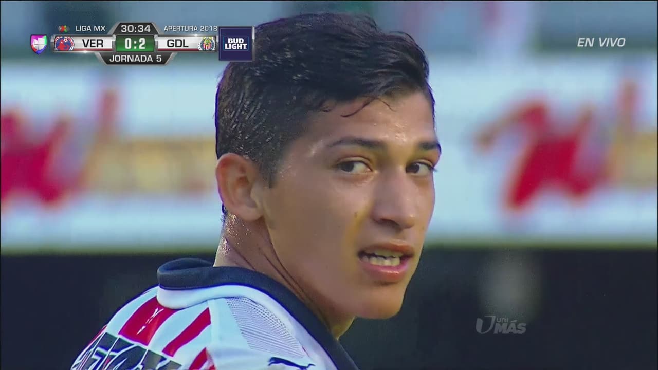 El delantero del Guadalajara le pegó con la zurda y la pelota pegó en el poste en lo que era el tercer tanto del Rebaño Sagrado.