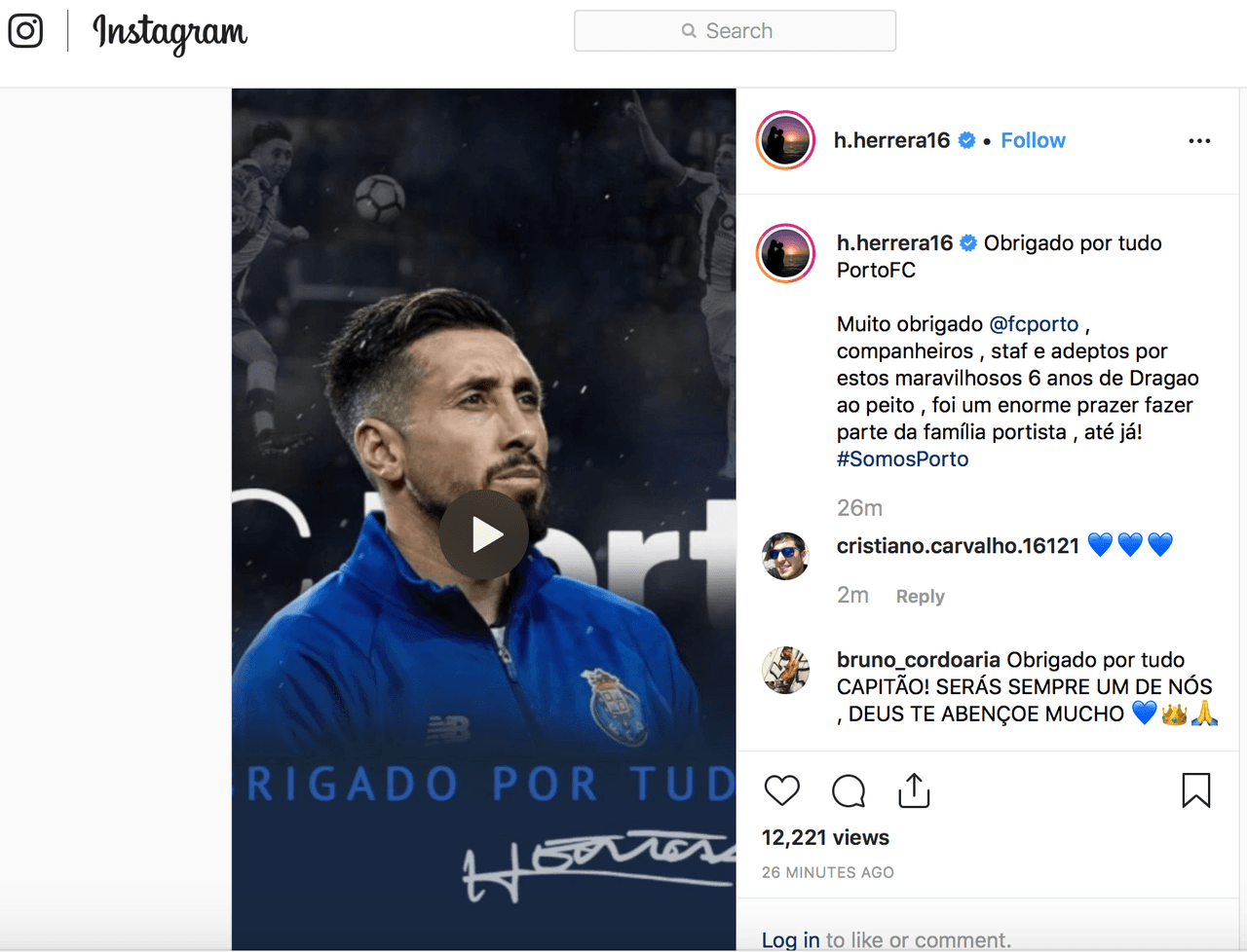 Es un hecho que Héctor Herrera no seguirá en el Porto y este martes el mexicano aprovechó sus redes sociales para despedirse del club portugués.
