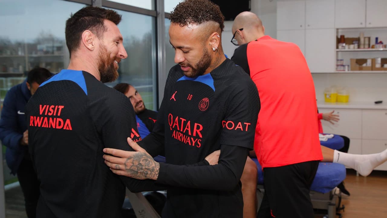 El PSG mostró en su cuenta de Twitter un breve vídeo de Messi esta mañana a su llegada al centro de entrenamiento y una foto en la que recibía el saludo de Neymar, otra de las estrellas del club.