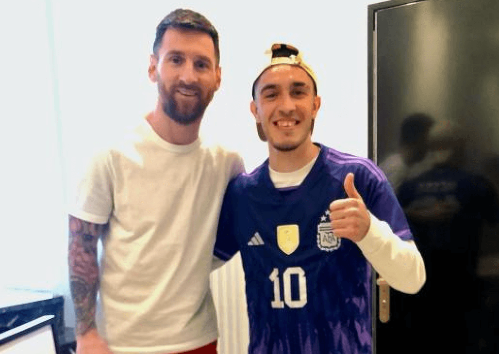 “Se llama Juan Polcan. Juega al futsal en Italia, semiprofesional. Quería conocer a Lionel Messi. Se fue a Francia, encontró la dirección, acampó en la puerta. El de seguridad le decía: ‘Voy a llamar a la policía’. Lo vio salir a Leo. Parece que, en un momento, le pasó un mensaje, lo recibió Antonela (Roccuzzo), (y le dijo): ‘Espera, ahora vemos’. Él estaba con amigos, por supuesto. Volvió Leo del entrenamiento, salió Antonela, y los invitó a pasar”, relató Martin.