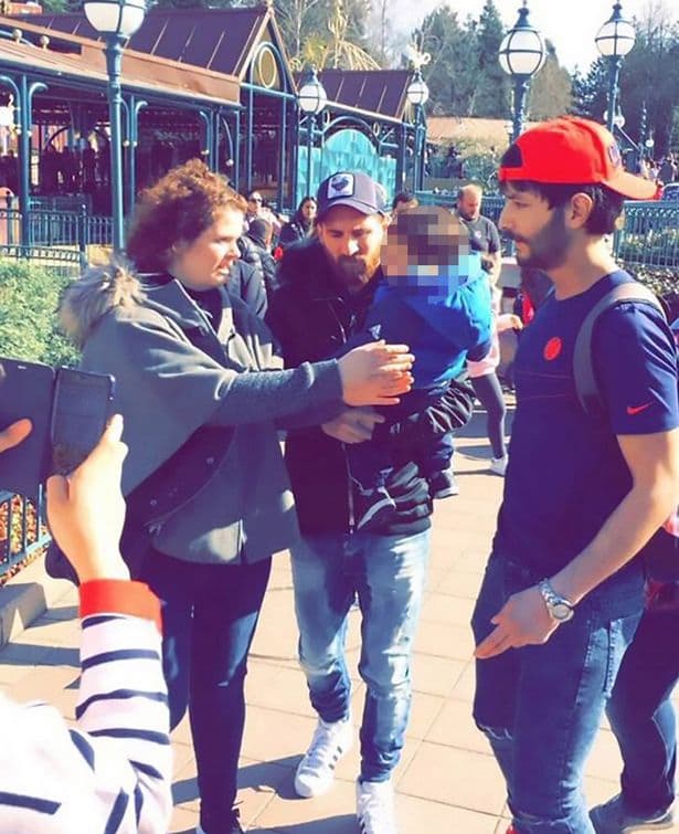 La estrella del Barcelona ha visitado el parque con sus hijos y esposa pero no ha podido evitar ser reconocido por aficionados.