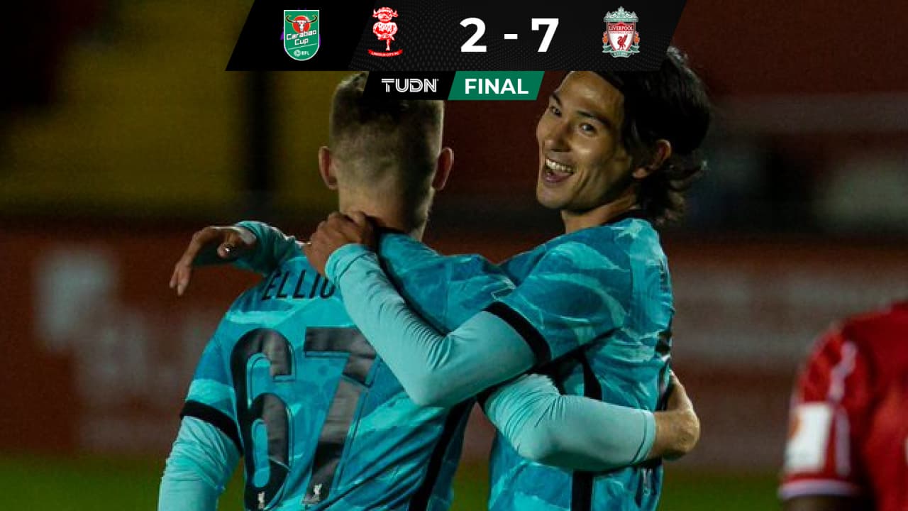 El equipo de Jürgen Klopp no tuvo piedad y goleo; las anotaciones fueron un doblete de Takumi Minamino y otros dos de Curtis Jones, también marcaron Xherdan Shaqiri, Marko Grujić y Divock Origi.