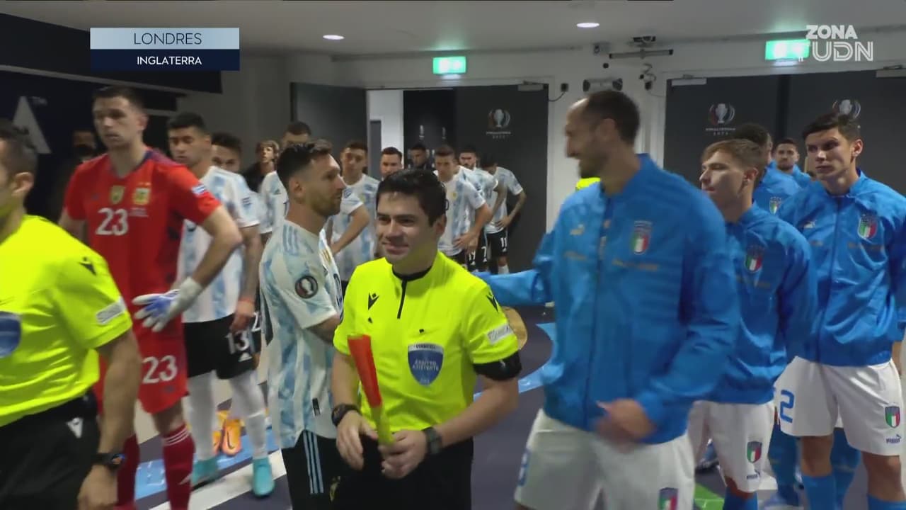 Giorgio no paraba de voltear a la formación de Argentina y una sonrisa se le dibujó cuando vio a ‘La Pulga’.