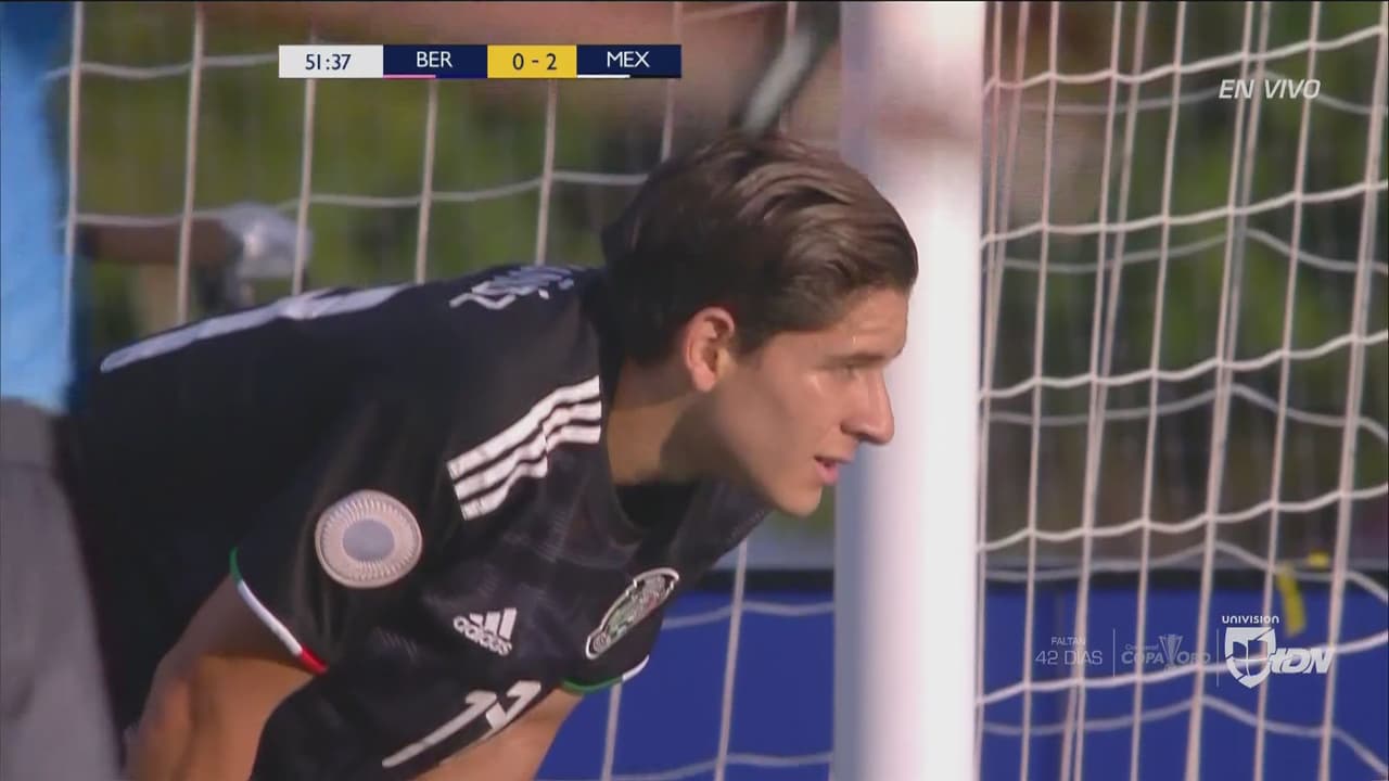 Dentro del área y solo frente al arco, la falló el atacante mexicano.
