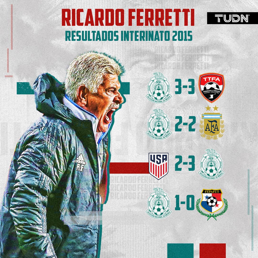 Ferretti dejó el barco tricolor tras los cuatro partidos dirigidos con una efectividad del 66% previo a la designación de Juan Carlos Osorio como timonel azteca.