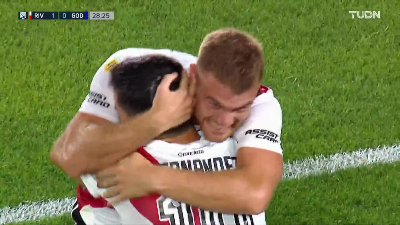 Lucas Beltrán marca el 1-0 para River Plate sobre Godoy Cruz