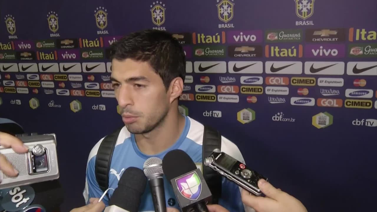 El delantero del Barcelona, Luis Suárez, habló después del empate ante Brasil y bromeó sobre la apuesta de una hamburguesa que tuvo con Neymar.