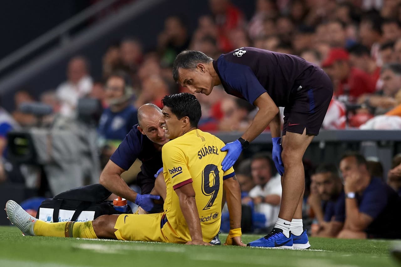 El atacante uruguayo se retira del campo en el juego ante el Athletic y enciende alarmas.