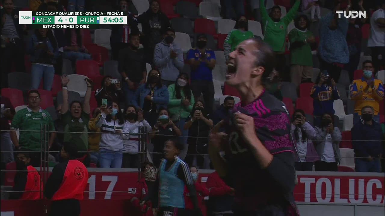 Gran pase de Stpehany Mayor para que Diana añada otro gol a la cuenta para México al 54’.