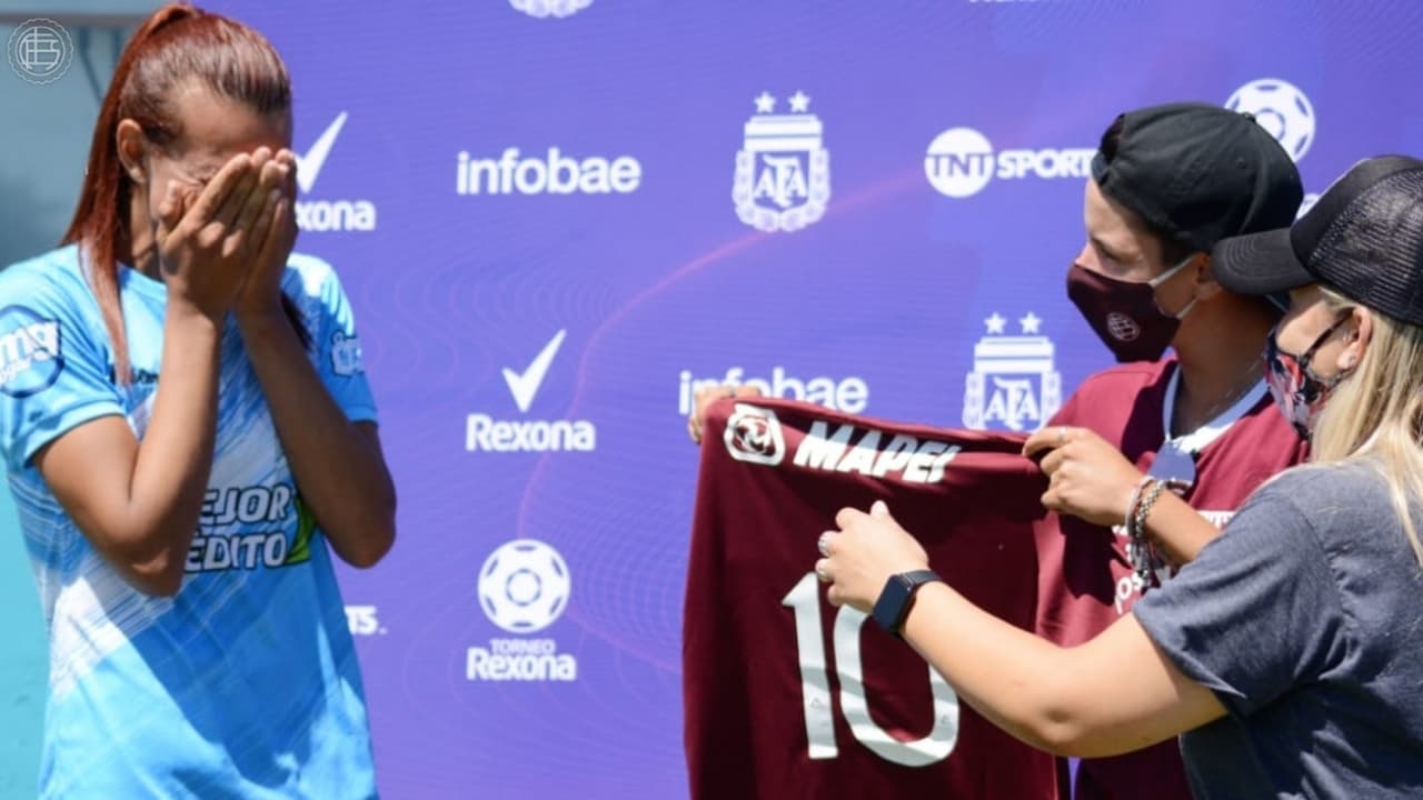 ✊ Finalizado el partido contra Villa San Carlos, Club Lanús le hizo un reconocimiento a Mara Gómez, que luego de un largo camino de lucha se convirtió en la primera futbolista trans en jugar en la Primera División de nuestro país. pic.twitter.com/EXNfzdnwHw