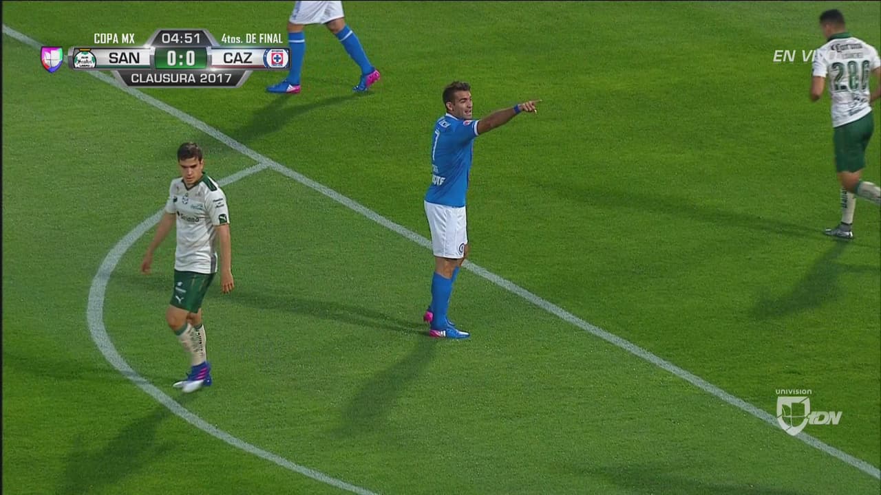 El atacante celeste giró solo dentro del área, pero su remate se fue por encima de la portería que defiende Jonathan Orozco.