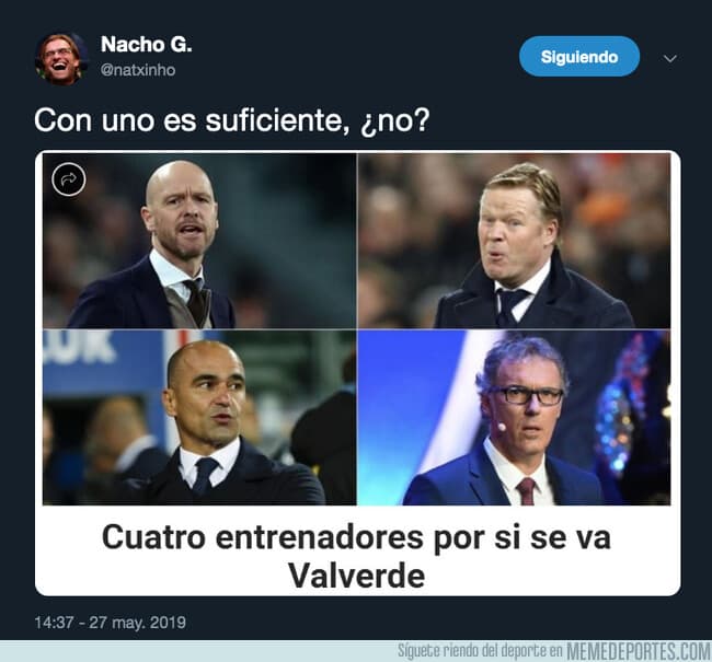 Memelogía: algunos fans del Barcelona esperaban la salida de Valverde, y no se les hizo
