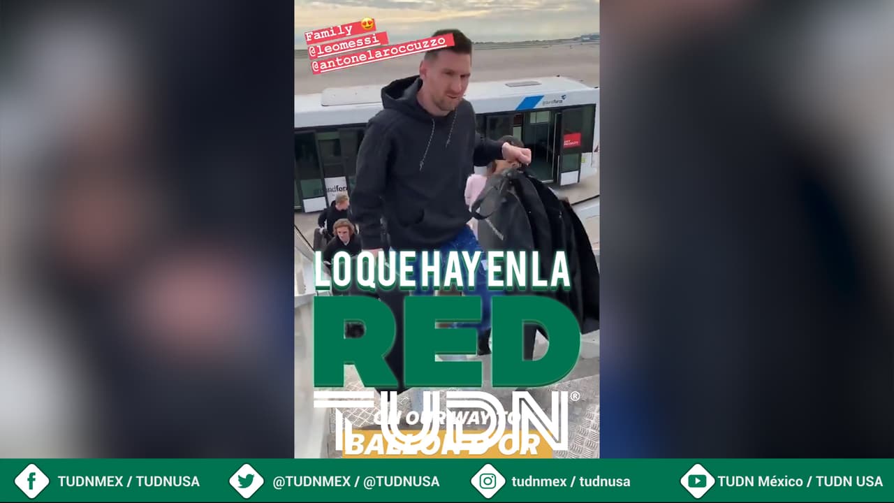 De cara a la gala del Balón de Oro, el argentino del Barcelona viaja con su familia.