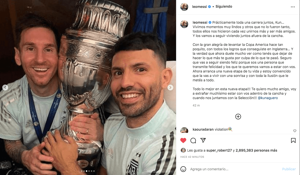“Prácticamente toda una carrera juntos, Kun… Vivimos momentos muy lindos y otros que no lo fueron tanto, todos ellos nos hicieron cada vez unirnos más y ser más amigos. Y los vamos a seguir viviendo juntos afuera de la cancha.