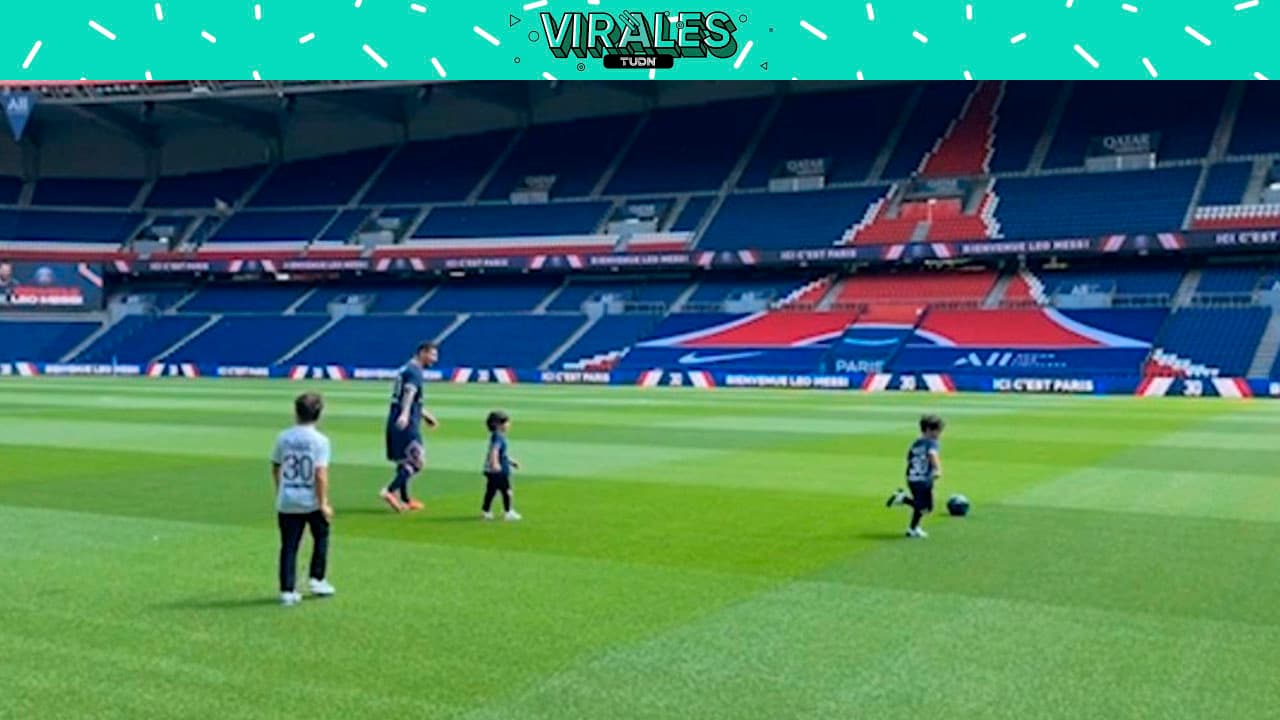 Messi y sus hijos se divierten en el Parque de los Príncipes