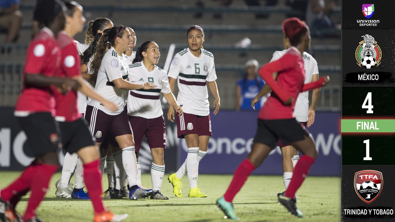 El equipo femenil mexicano, con goles de Charlyn Corral, en dos ocasiones, Katie Johnson y María Sánchez, se impuso 4-1 a las trinitarias que descontaron con un penal de Jonelle Cato.