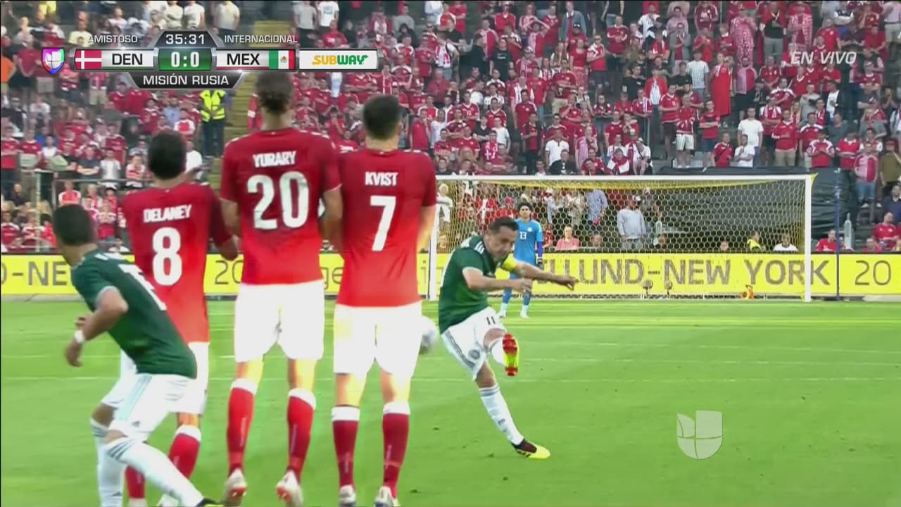 Andrés Guardado mete disparo de tiro libre directo que pasa muy cerca