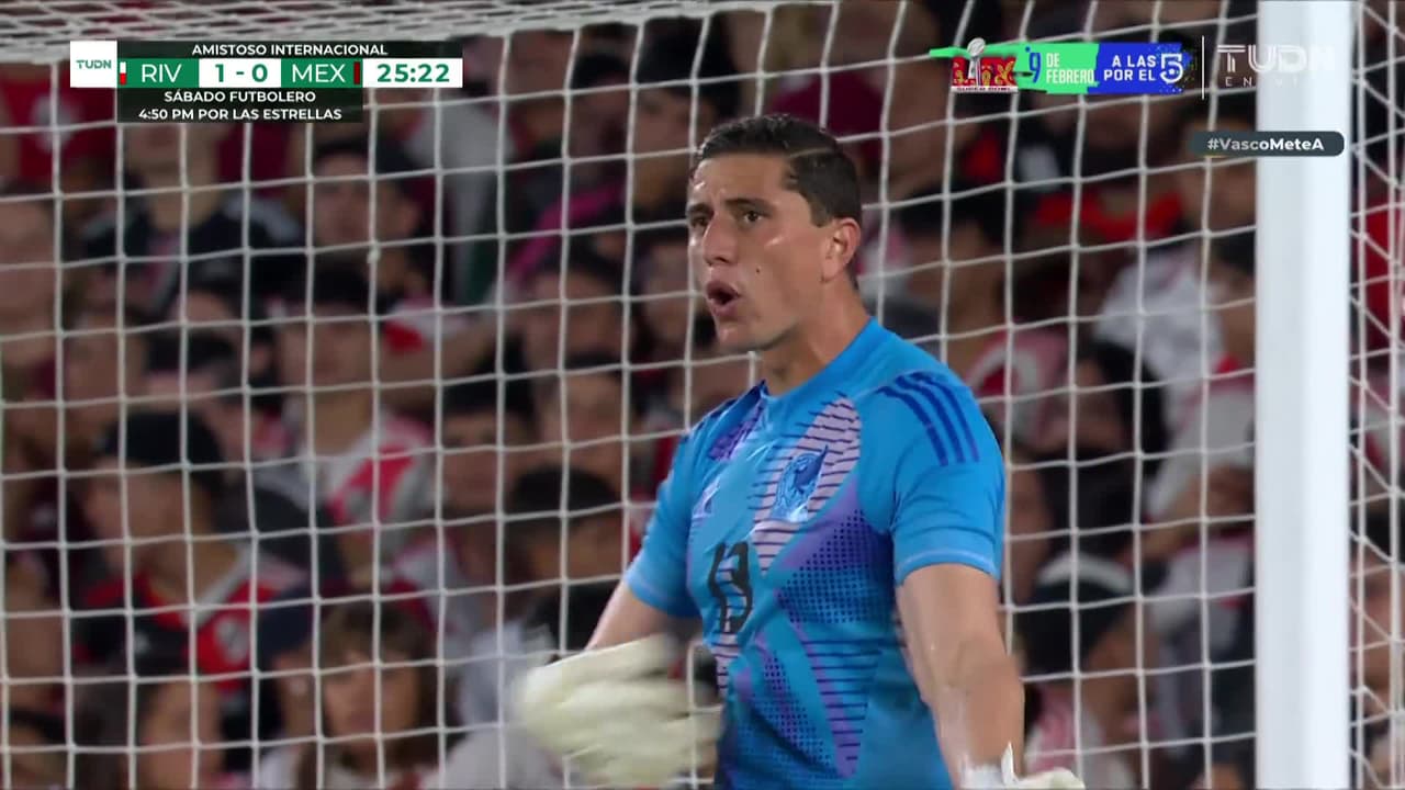 El portero mexicano se coloca bien y ataja un balón para posteriormente pedir calma a la selección.