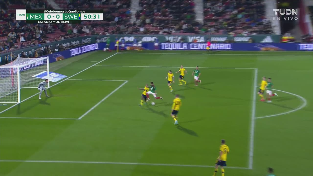 Luis manda disparo fuera del área que llega fácil a las manos del portero de Suecia al 51’.