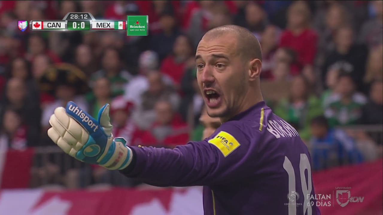 Miguel Layún prendió un balón fuera del área y el portero canadiense se lució con la atajada.