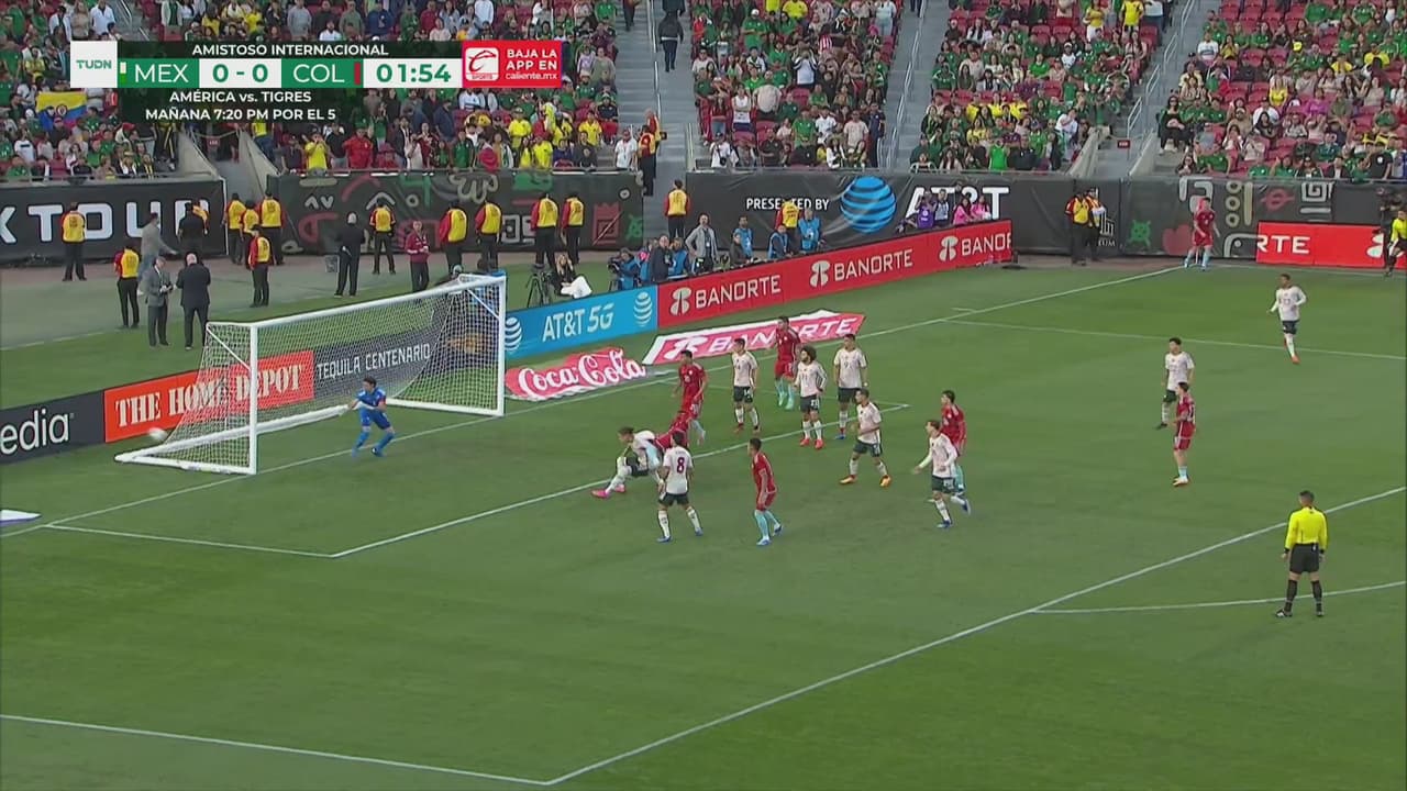 El defensor se agregó al frente en tiro de esquina y estuvo cerca de mandar la bola a la portería de México.