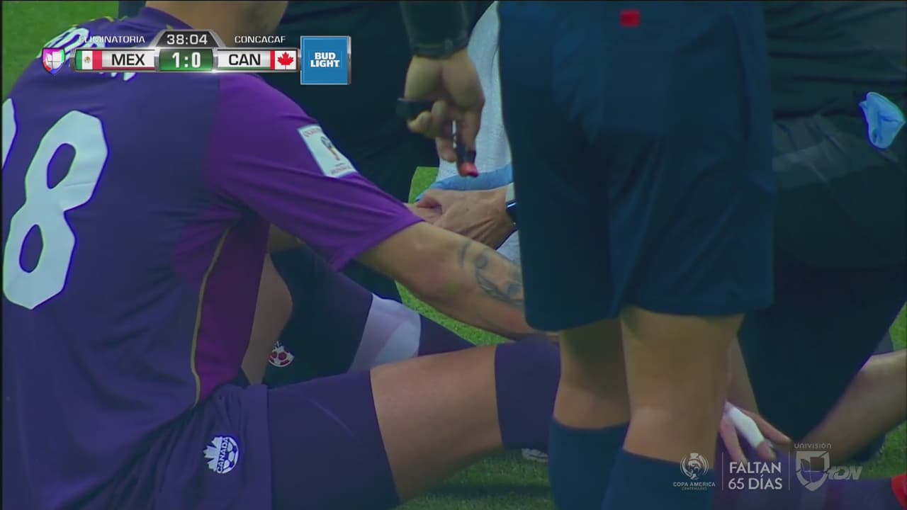 El portero de la selección de Canadá se retiró del campo tras lesionarse la mano tras un disparo de Fabián.