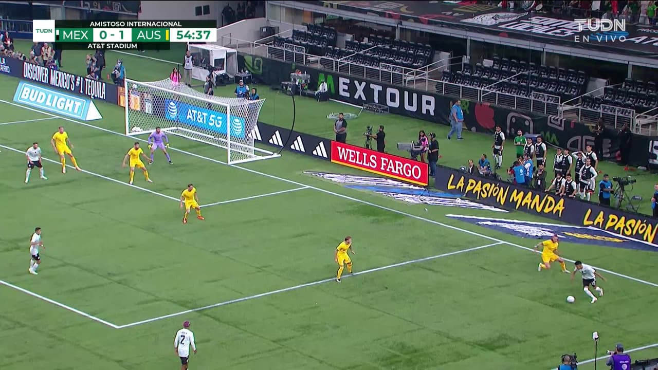¡Penalti fallado! México 0| Australia 1. Santiago Giménez (México) remata al poste izquierdo| Disparo con la derecha.