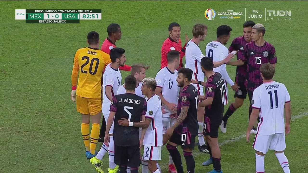 El portero del Team USA empujó al defensa de México y todos los del Tri se le fueron encima al 83’.