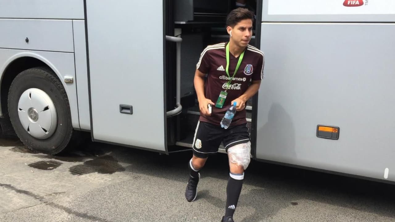 Diego Lainez terminó entrenamiento con golpe en la rodilla