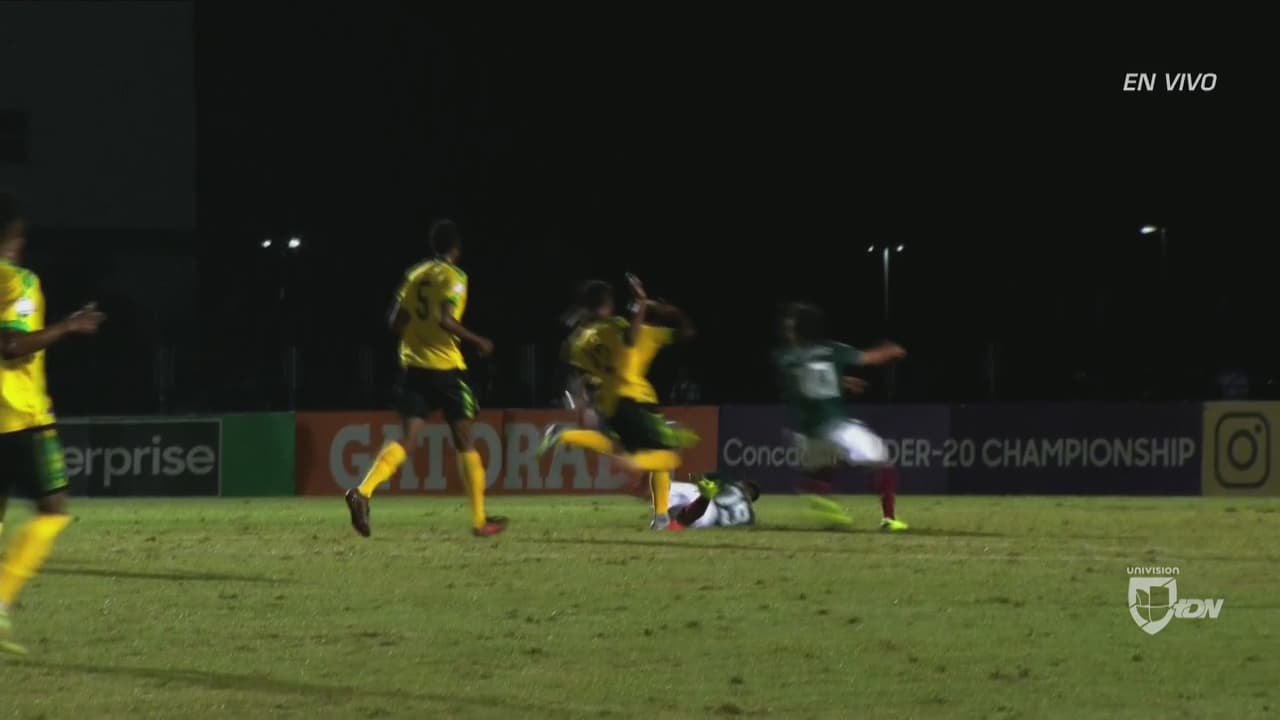 López fue arrollado dentro del área de Jamaica y el silbante no marcó penal de manera increíble.