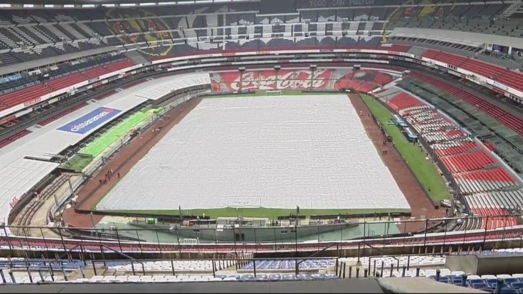 El campo de juego del Azteca fue cubierto con una lona y luce firme a horas del México-Panamá