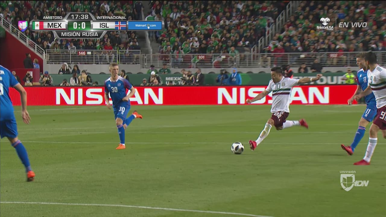 México poco a poco se va haciendo del balón y ya consiguió una jugada de peligro sobre el arco de Islandia.