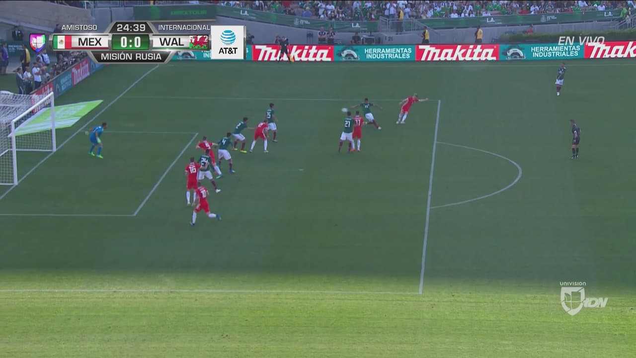 Jesús ‘Tecatito’ Corona fue el primero en pegarle a la portería y estuvo muy cerca de abrir el marcador tras una extraordinaria jugada individual que terminó en tiro de esquina. Dos minutos después, llegó la respuesta por parte de Gales que, si no es por una barrida precisa de Hugo Ayala, se hubiera puesto al frente en el marcador.