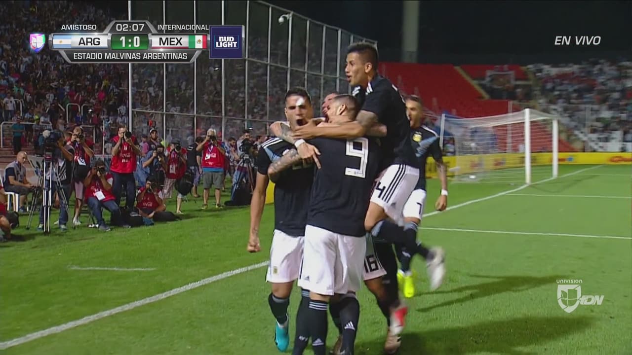 Feo error de la zaga mexicana que entró dormida, dejaron el balón en tres cuartos, la tomó Icardi y no perdonó. Argentina le pega desde el vestidor a un muy pobre Tri.