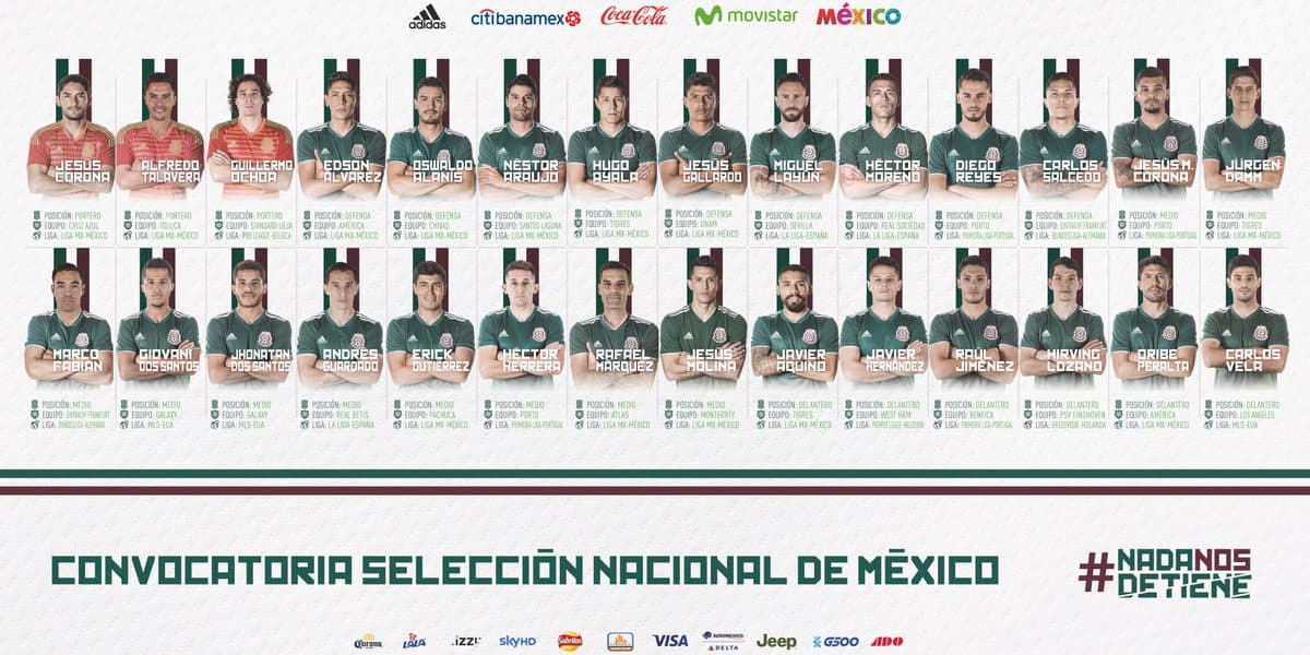 Néstor Araujo, Diego Reyes, Andrés Guardado, Jona dos Santos y Gio dos Santos están lesionados.