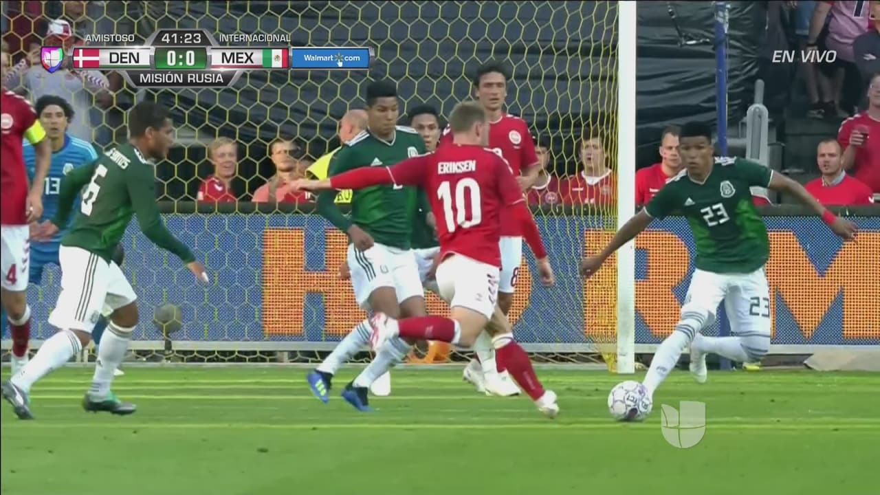 Eriksen sacó un derechazo que apenas salió desviado… se salvó México
