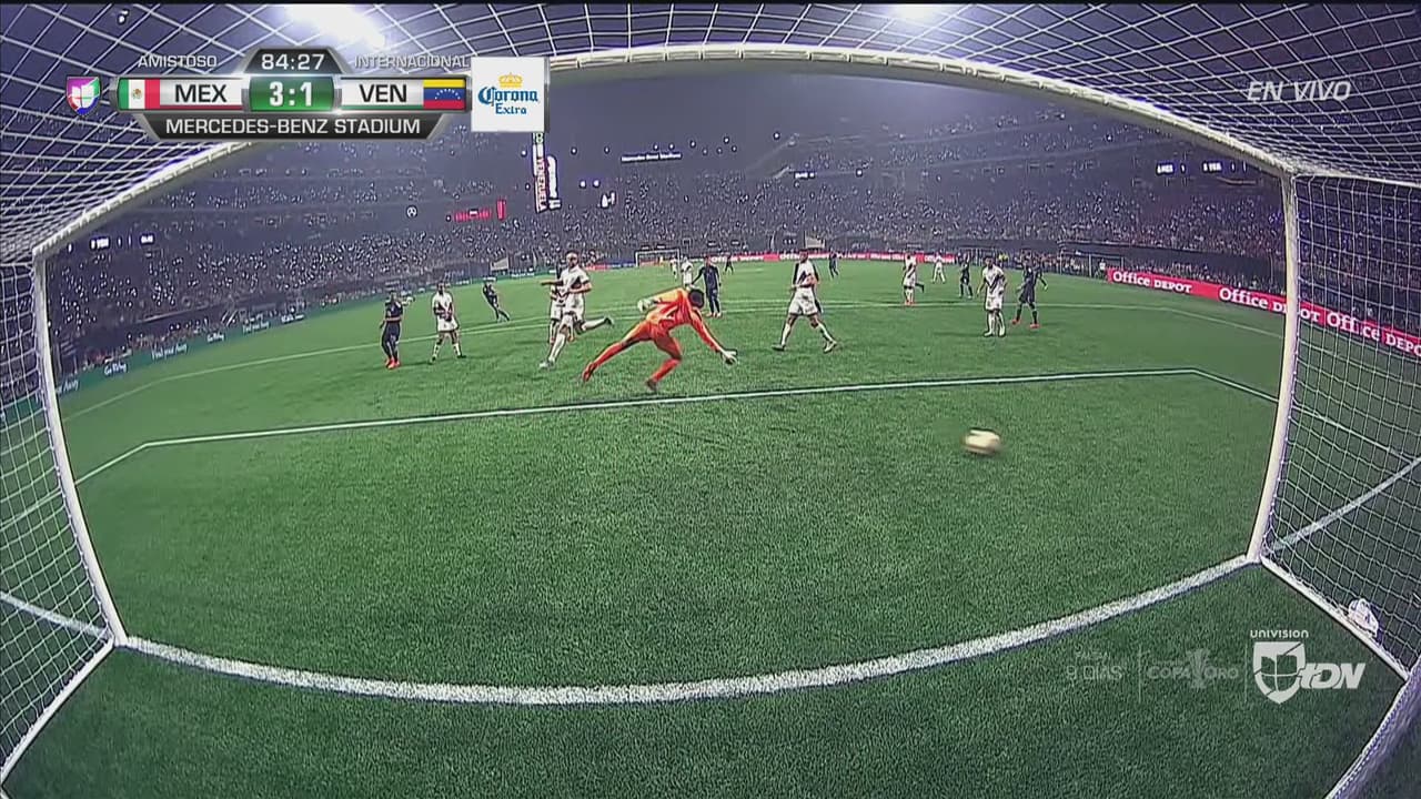 El volante mexicano se animó a disparar a portería tras un rebote al tiro de Orbelín y la pelota se fue a nada de colarse a la cabaña venezolana en lo que era el cuarto.