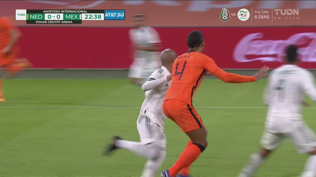 El lateral Owen Wijndal, el otro debutante de esta noche como internacional neerlandés, vivió una pesadilla frente al mexicano Jesús 'Tecatito' Corona, que lo sobrepasó en todo momento por la banda derecha.