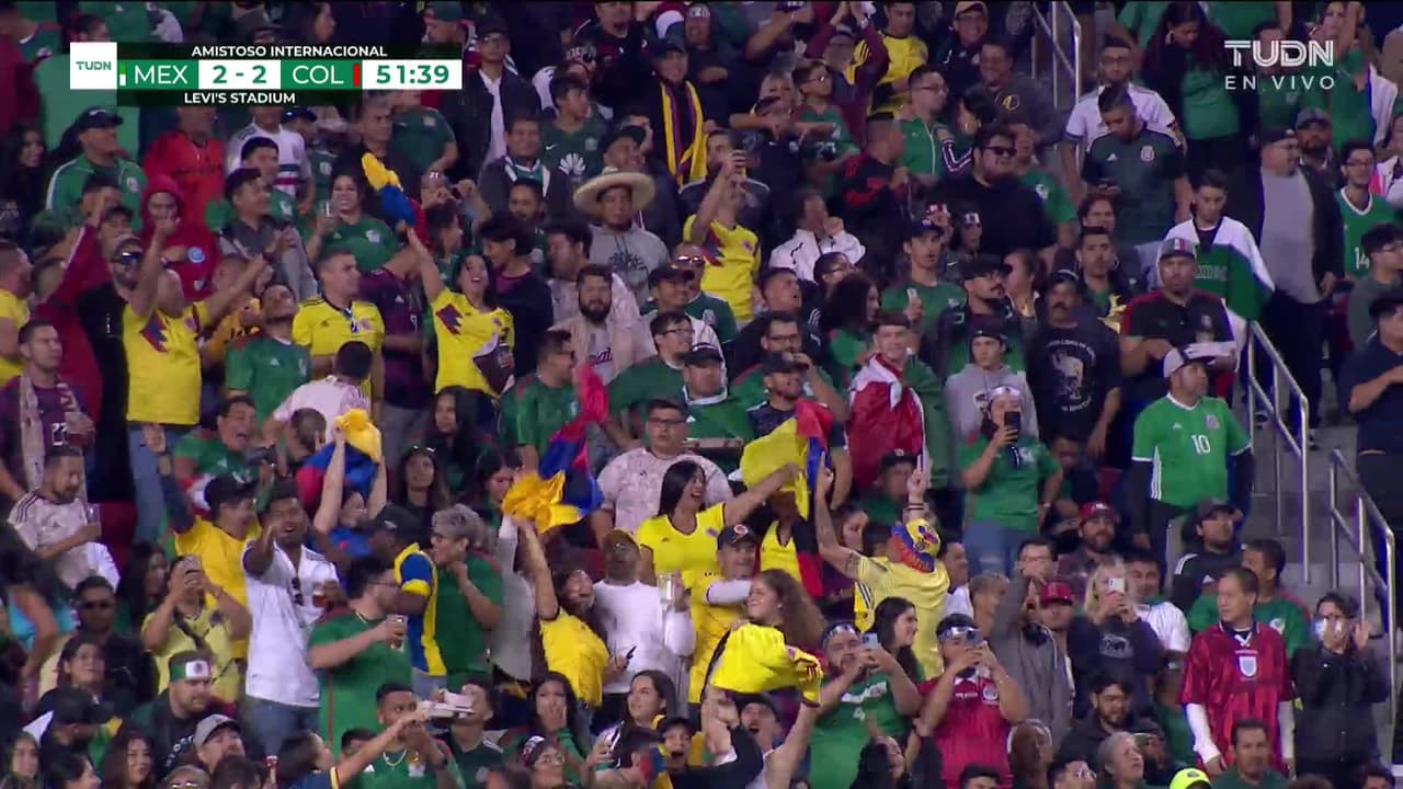 ¡Gol! México 2| Colombia 2. Luis Sinisterra (Colombia) Disparo con la derecha desde el centro del área.