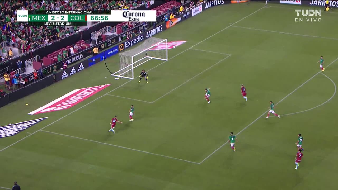 ¡Gol! México 2| Colombia 3. Wílmar Barrios (Colombia) Disparo con la derecha desde fuera del área por arriba. Asistencia de Rafael Borré.