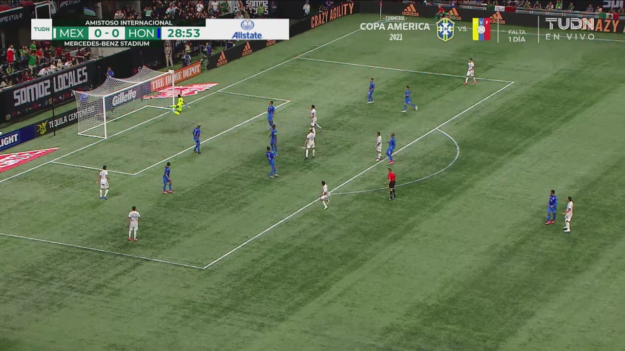 Hubo varios toques en el área de Honduras que Carlos terminó mandando al metal con disparo al 29’.