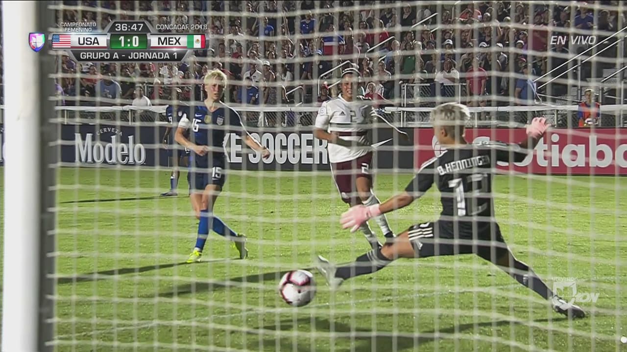 La portera mexicana desvío de forma espectacular una pelota que amenazaba con ser el segundo gol de las estadounidenses.