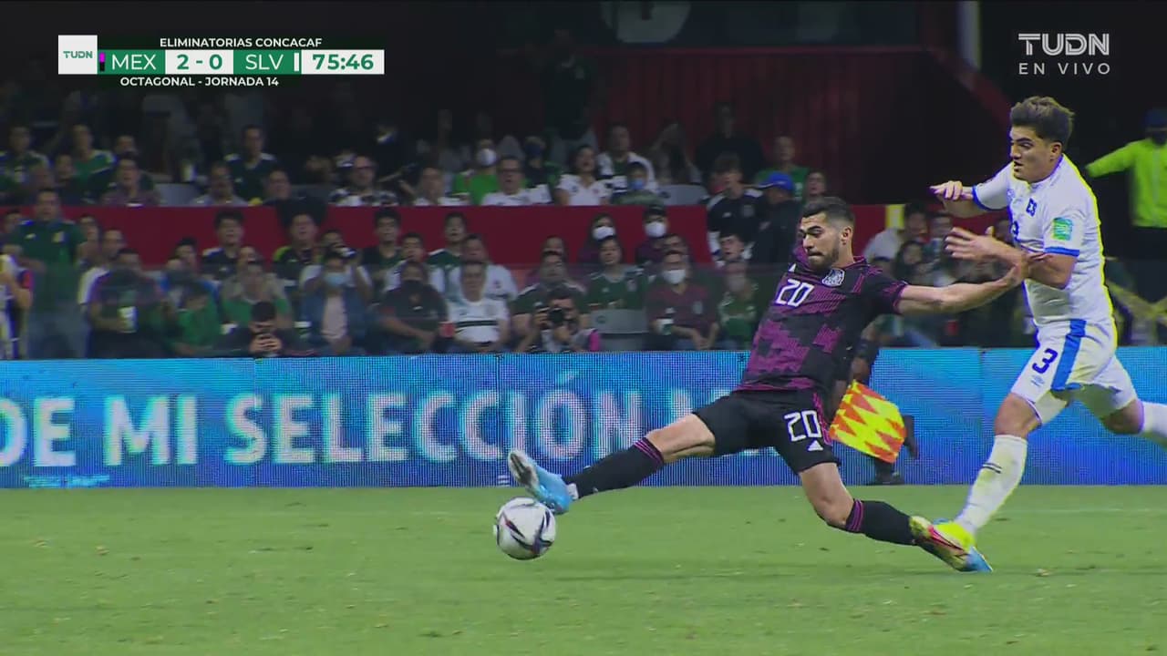 Gran pase filtrado del ‘Tecatito’ que puso a Martín de frente al arco, pero se quejó de una falta al 76’.