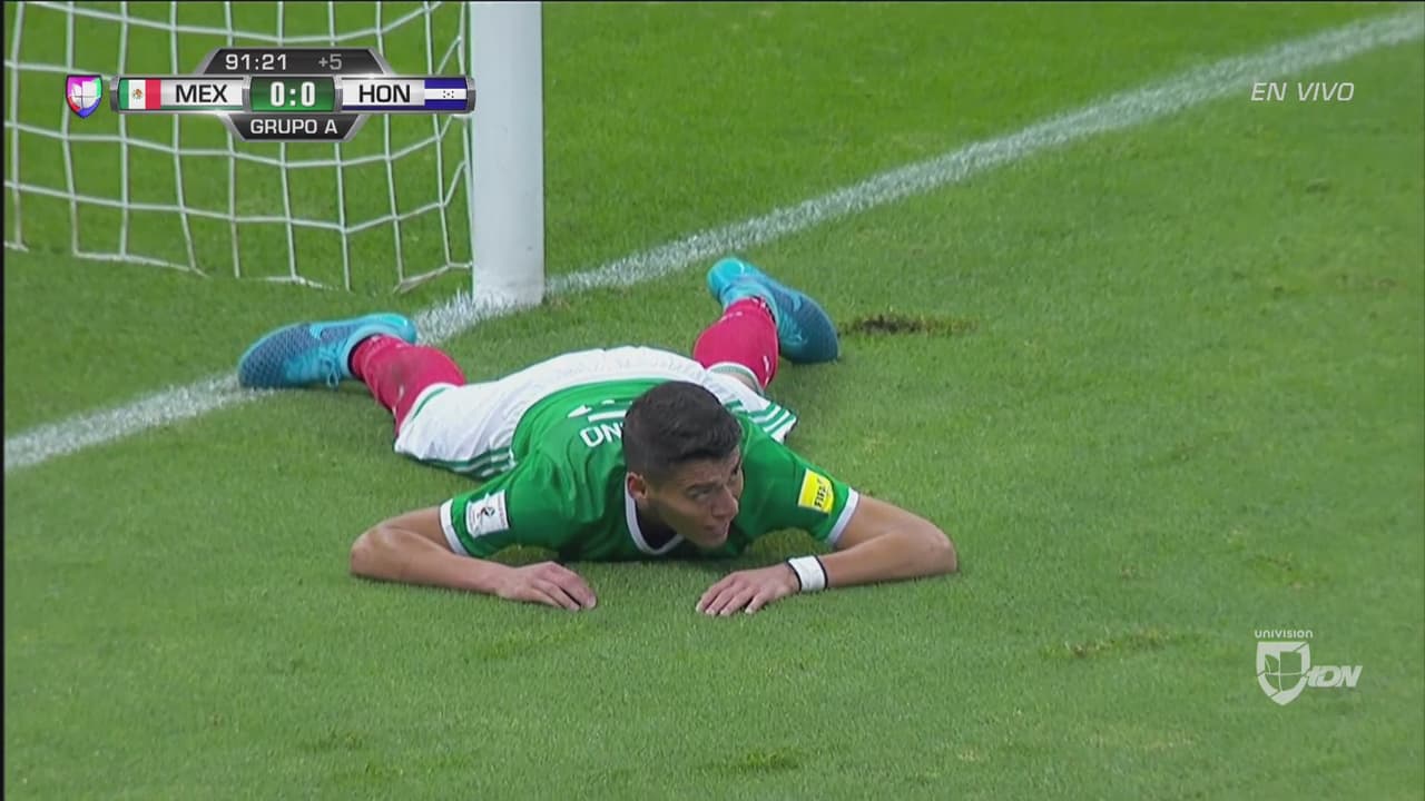 El defensor mexicano no logró rematar de forma adecuada y se perdió el gol del triunfo para México.